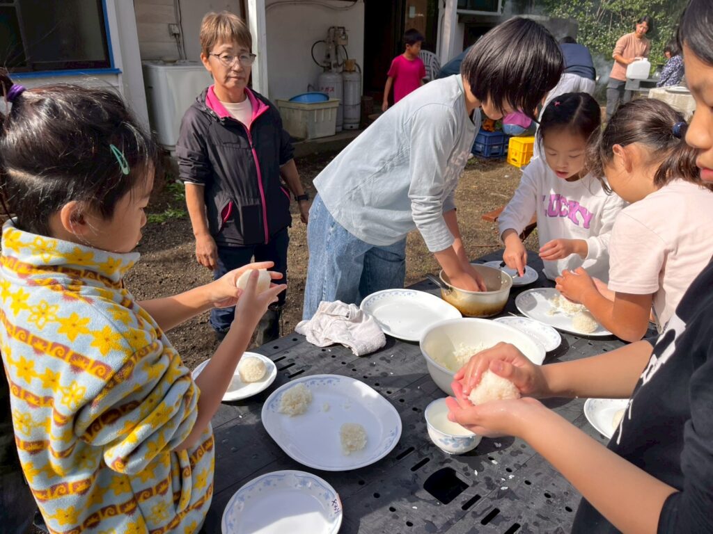 3つ目は市販米を炊飯器で炊いたものを、1人ずつ自分のおにぎりを握りました。