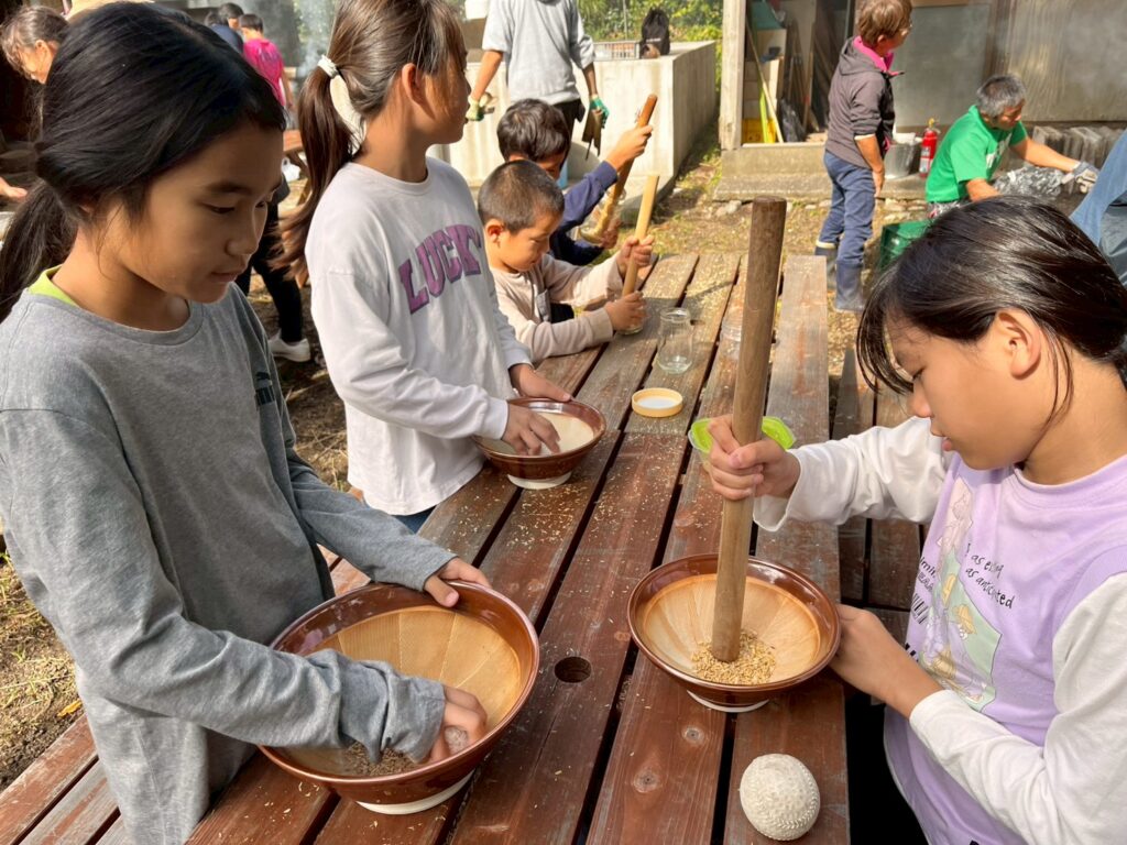 精米したお米は玄米お粥にして、みんなで美味しくいただきました🍴
