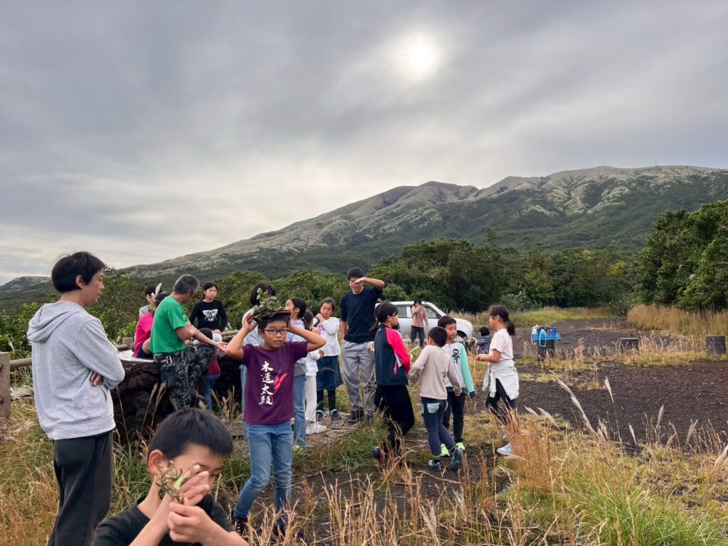 火の山峠園地に着いたら、鬼ごっこやドロケイをして走り回ったり、ツルの冠作って飾り付けしている子もいました👑