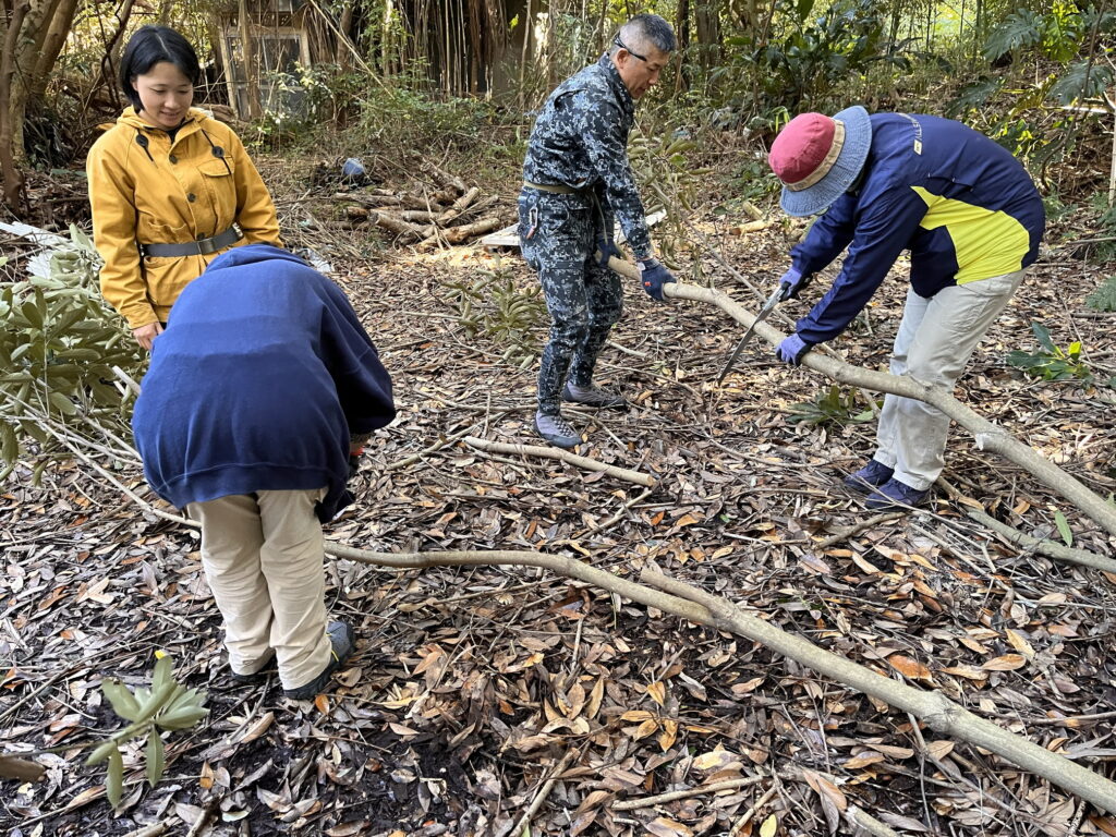 ノコギリの扱い方、木が倒れるときの注意点などは、3月に行った林業講習会を活かし、復習も兼ねて。