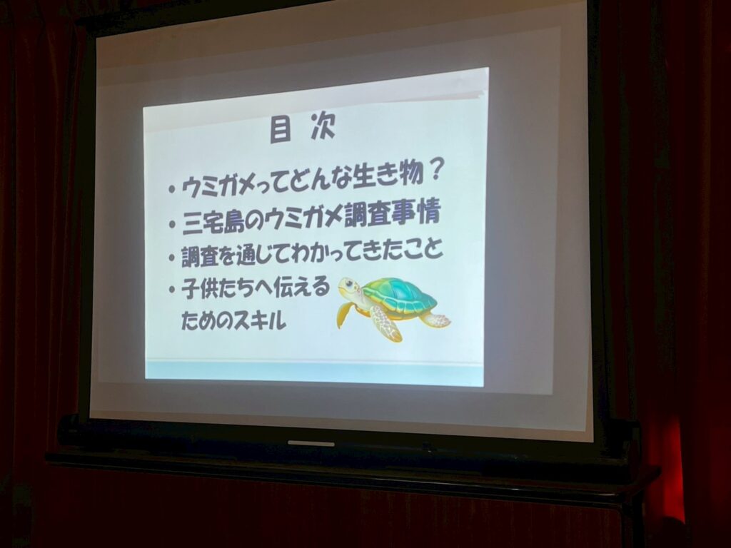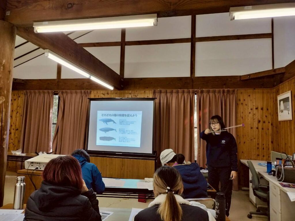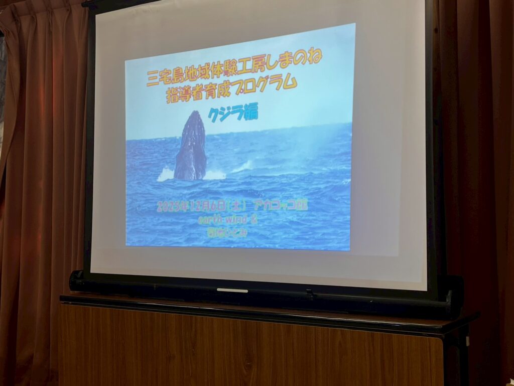 12月6日(土)に菊地ひとみ氏を講師にお招きし、「三宅島の生き物観察と指導法講習(海洋域の生物編)」として、島で陸からも観察できるザトウクジラとウミガメについての講習会をしました。